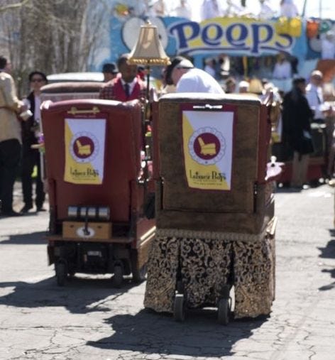 We arrived at the station and found our way onboard, upstairs and down the aisle to room number 3. With visions of the luxurious wood-walled cabins from Murder on the Orient Express dancing in my imagination, we ended up in a four-foot-wide space that more closely resembled the Naugahyde recliners ridden down the street by those Mardi Gras revelers a few years ago.