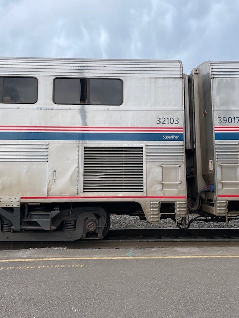 Amtrak, the nation’s main passenger railroad, was running a two-for-one special. That was the only excuse we needed. We decided to make an overnight trip to visit family in Santa Cruz, along the coast of California. Since we’re no longer capable of sleeping in an upright position, coach class was out. We reserved what’s called a “roomette” which held the promise of two beds.